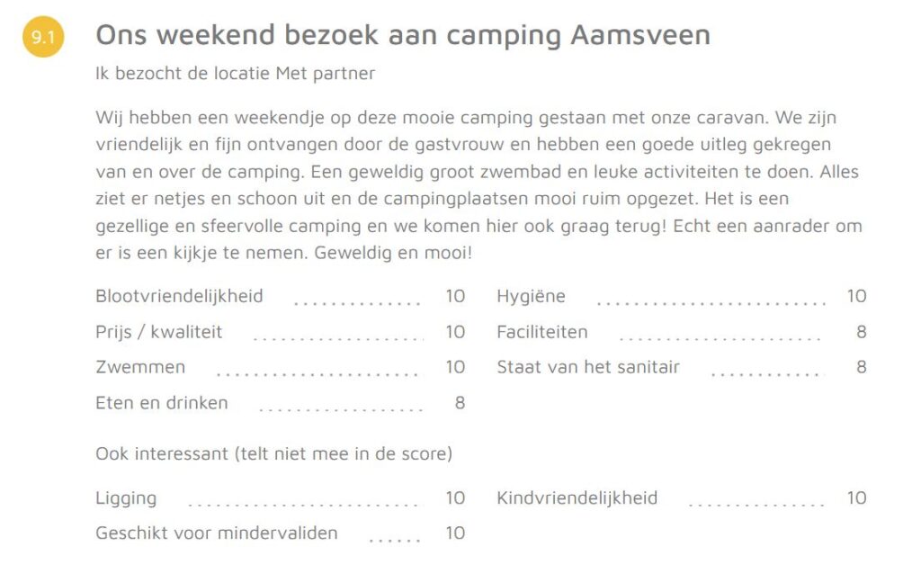 Afgelopen zomer 3 weken heerlijk genoten van het prachtige verenigingsterrein NON Aamsveen. Samen met mijn gezin met kinderen van 8 en 12 jaar een fantastische periode gehad. Erg mooi onderhouden door eigen leden en een zeer mooi 25 meter bad. De kinderen hebben zich geen moment verveeld door de vele activiteiten die werden georganiseerd. Bijvoorbeeld kubben, jeu de boules, filmavond, pannenkoeken eten en kampvuur met marshmallows. Ook de mooie sauna is een aanrader. Op zaterdagavond is de bar open en komen leden en gasten samen voor een gezellige avond.